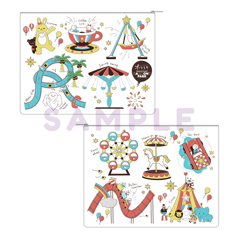 「HARMONY PARK」にちなんで、遊園地のモチーフをデザインに落とし込んだフラットポーチです。