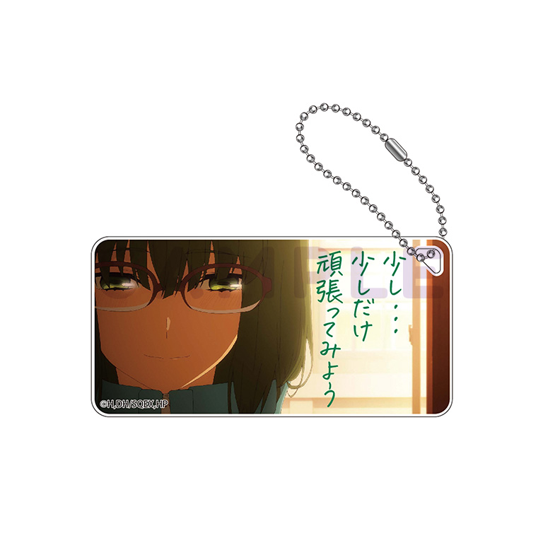 本編より厳選した場面写とセリフを、厚さ5㎜のアクリルプレートへ裏側と表側からプリントし、奥行きあるデザインに落とし込んだアクリルキーチェーンです。